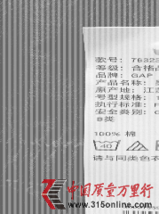 GAP童装品牌店产品B类标A类 多部门投诉无门……【详细】