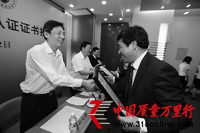 国家质检总局副局长、国家认监委主任孙大伟向获证单位颁发认证证书。