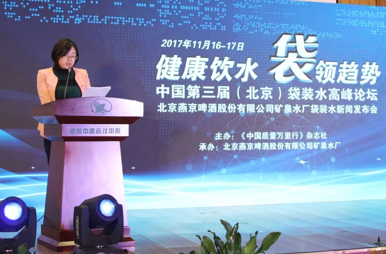 在这个大背景下,11月16~17日,由《中国质量万里行》杂志社主办,北京燕京啤酒股份有限公司矿泉水厂承办,袋装水行业网、袋装水行业论坛、山东饮用水杂志媒体支持的以“健康饮水‘袋’领趋势”为主题的中国第三届(北京)袋装水高峰论坛暨燕京袋装水新闻发布会在北京顺鑫绿色度假村成功召开。此届论坛为袋装水行业的良性发展,搭建一个交流研讨、解疑答惑、参观学习的平台。