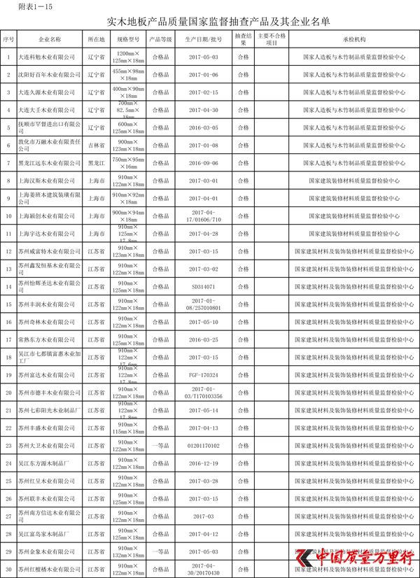 8月16日,国家质检总局通报2017年第2批实木地板产品质量国家监督抽查结果,共抽查了辽宁、吉林、黑龙江、上海、江苏、浙江、广东、四川、云南等9个省、直辖市80家企业生产的80批次实木地板产品,有2批次产品不符合标准的规定。